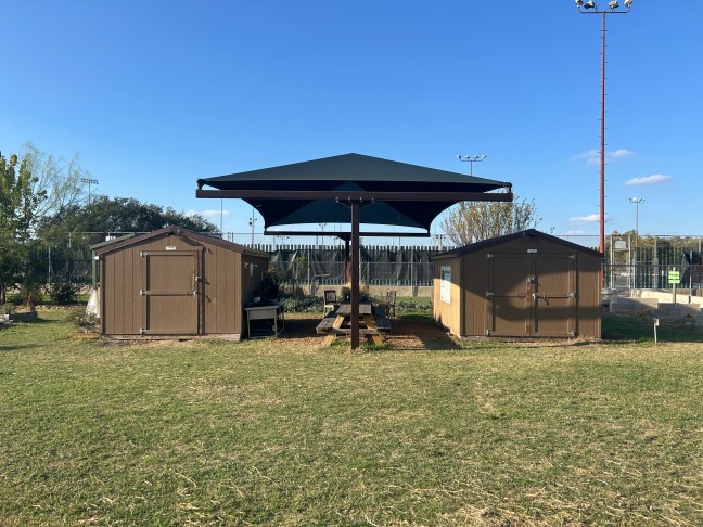 We currently have ~30 trees, with plans to transform this area into a food forest. Our fruit tree list includes loquat, pomegranate, fig, peach, olive, and mulberry. Our native tree list includes Texas persimmon, Texas kidneywood, Mexican buckeye, and Eastern redbud.