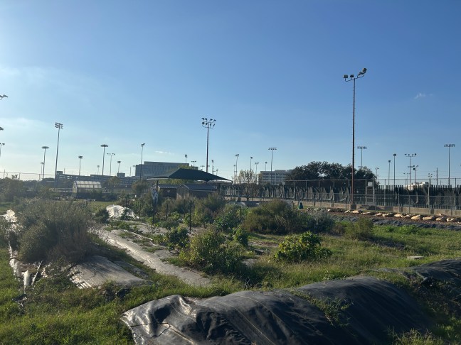The bays were built using cinder blocks and metal rods. We have six small bays that are used for composting at the farm from food waste drop offs by the UT community. Additionally, we have one large bay for soil and one large bay for mulch that we receive from UT Grounds and Landscaping.